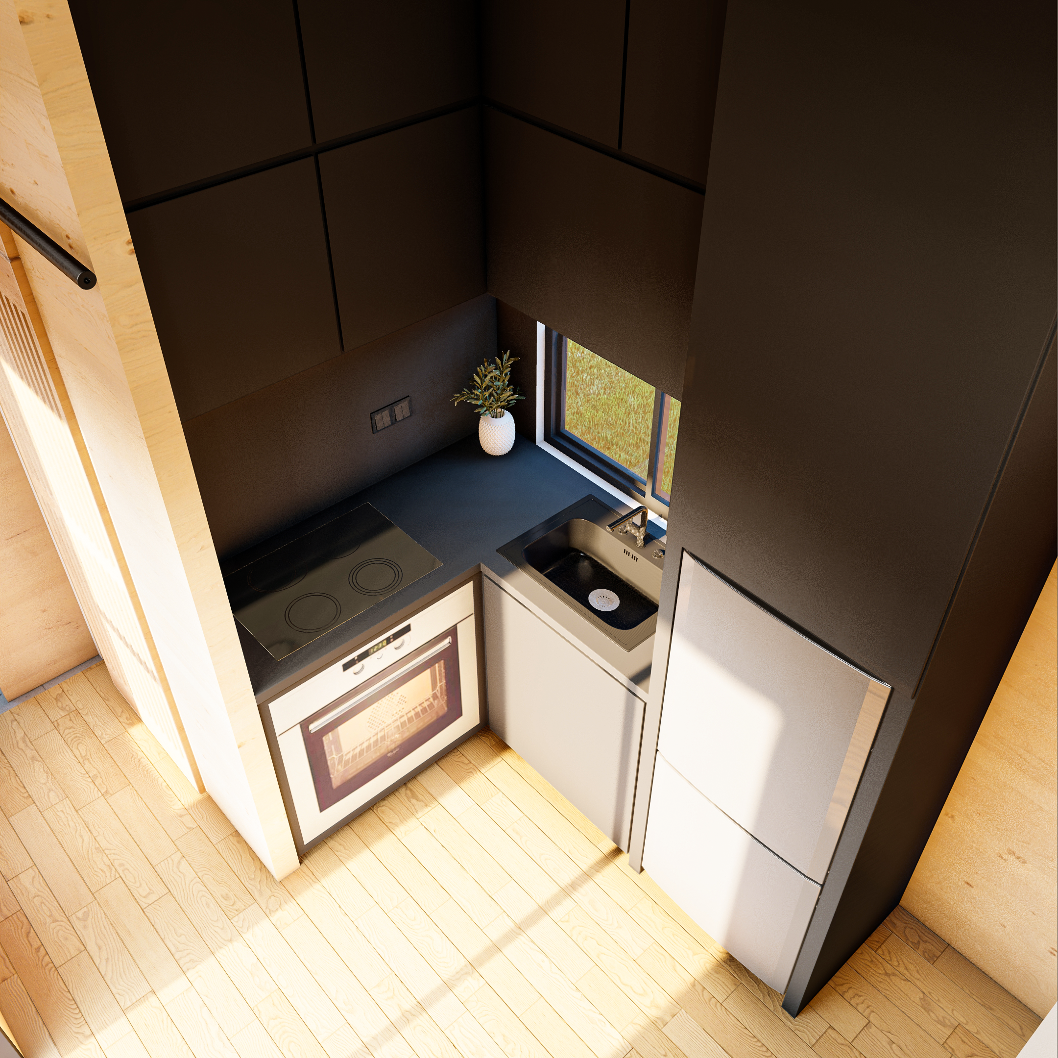 A stylish and efficient 24ft tiny home, perfect for simple and comfortable living.